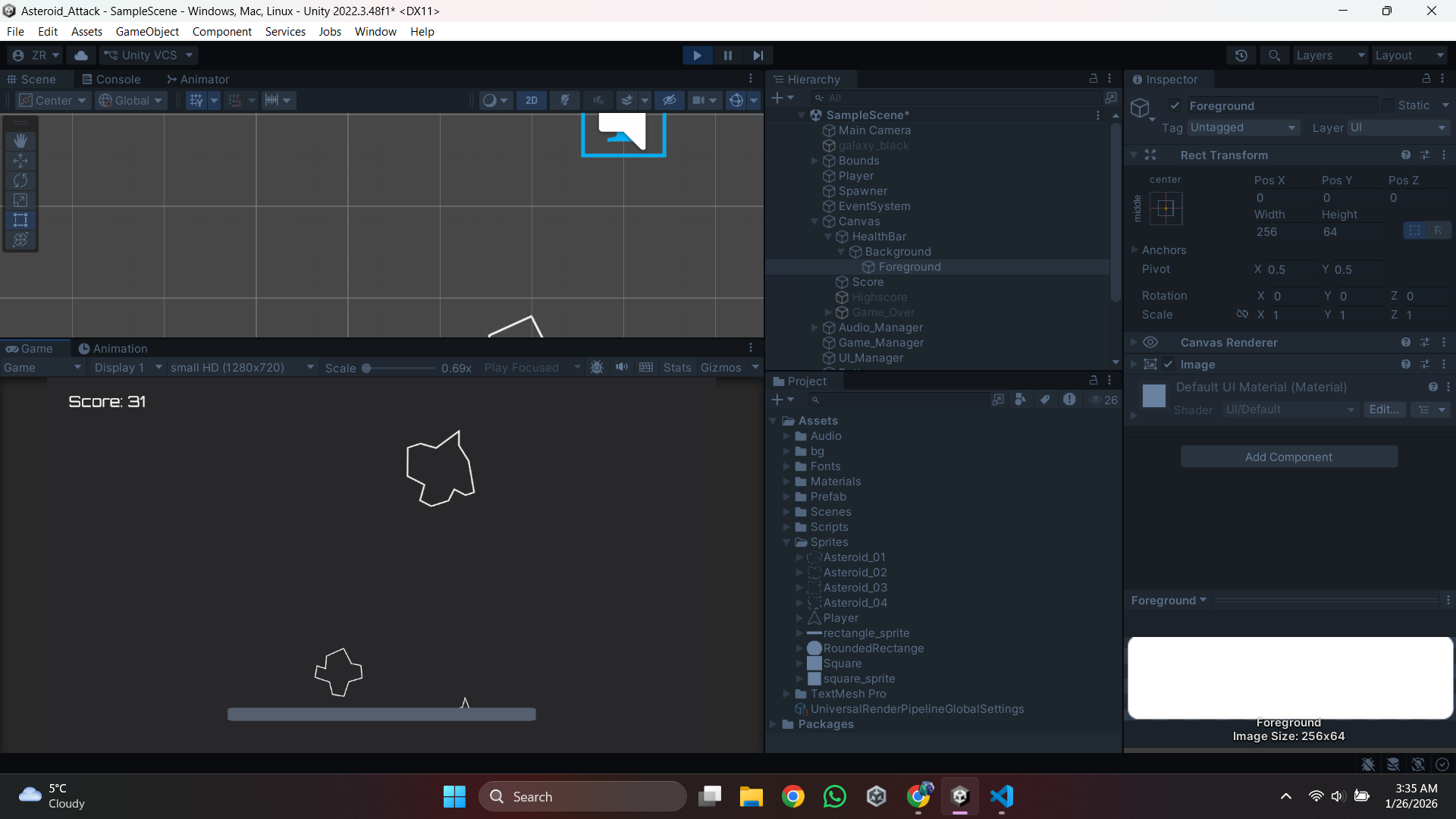 Asteroid Attack is a small 2D space survival game inspired by classic arcade shooters.